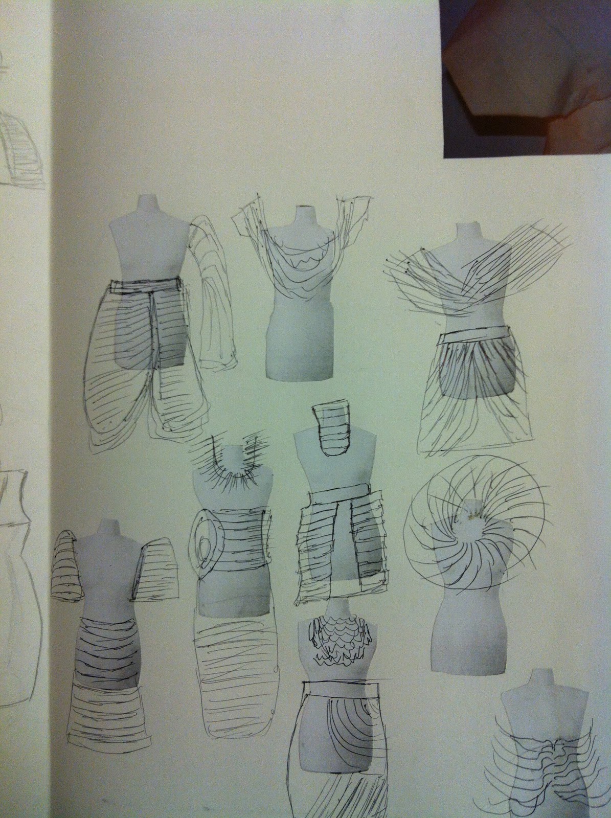 WEEK 6 ORIGAMI ARTIST /PLEATING DESIGN DEVELOPMENT IDEAS .I have been inspire by Issey Miyake origami collection stair case ll of fashion,I find the idea so much intrigue because the garment was cut and placed between paper sheet and finally heat treated in press to create his signature pleated look.I drew my line up which could be sew with fabric .